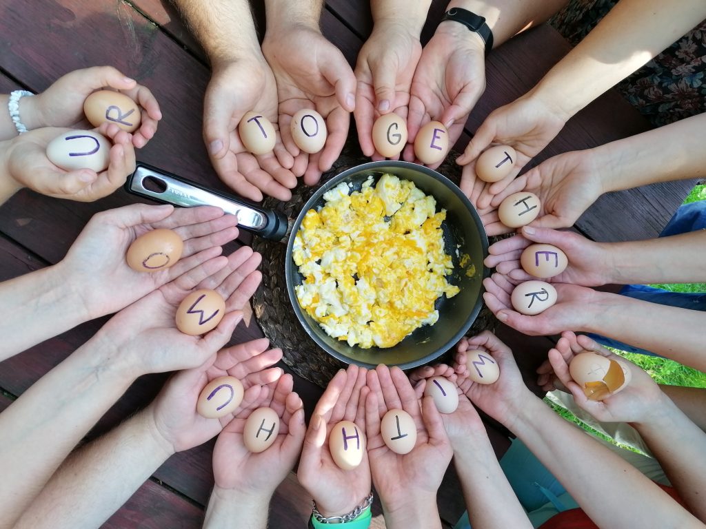 Společně tu všichni pracujeme a učíme se vytvářet zdravé mezilidské vztahy. Každý se dle svých možností podílí na každodenním chodu domácnosti, zvelebování domu a zahrady a vedení komunity. Okolo komunity se také pohybuje mnoho lidí, kteří jsou jí oporou. Jedná se hlavně o její zakladatele, šestičlennou správní radu a mnoho věrných přátel a dobrovolníků.